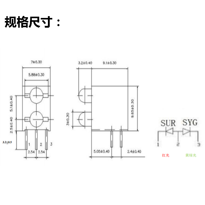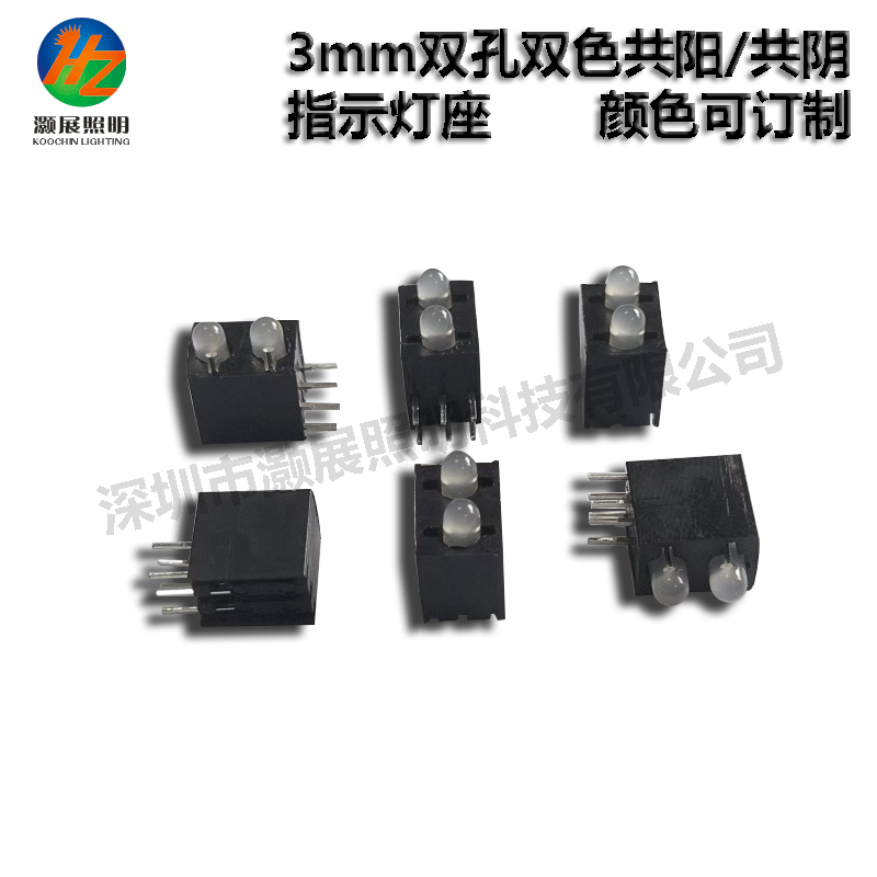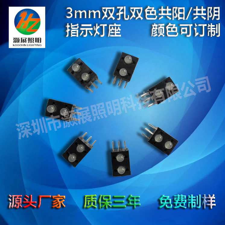3mm双孔双色3Pin指示灯座